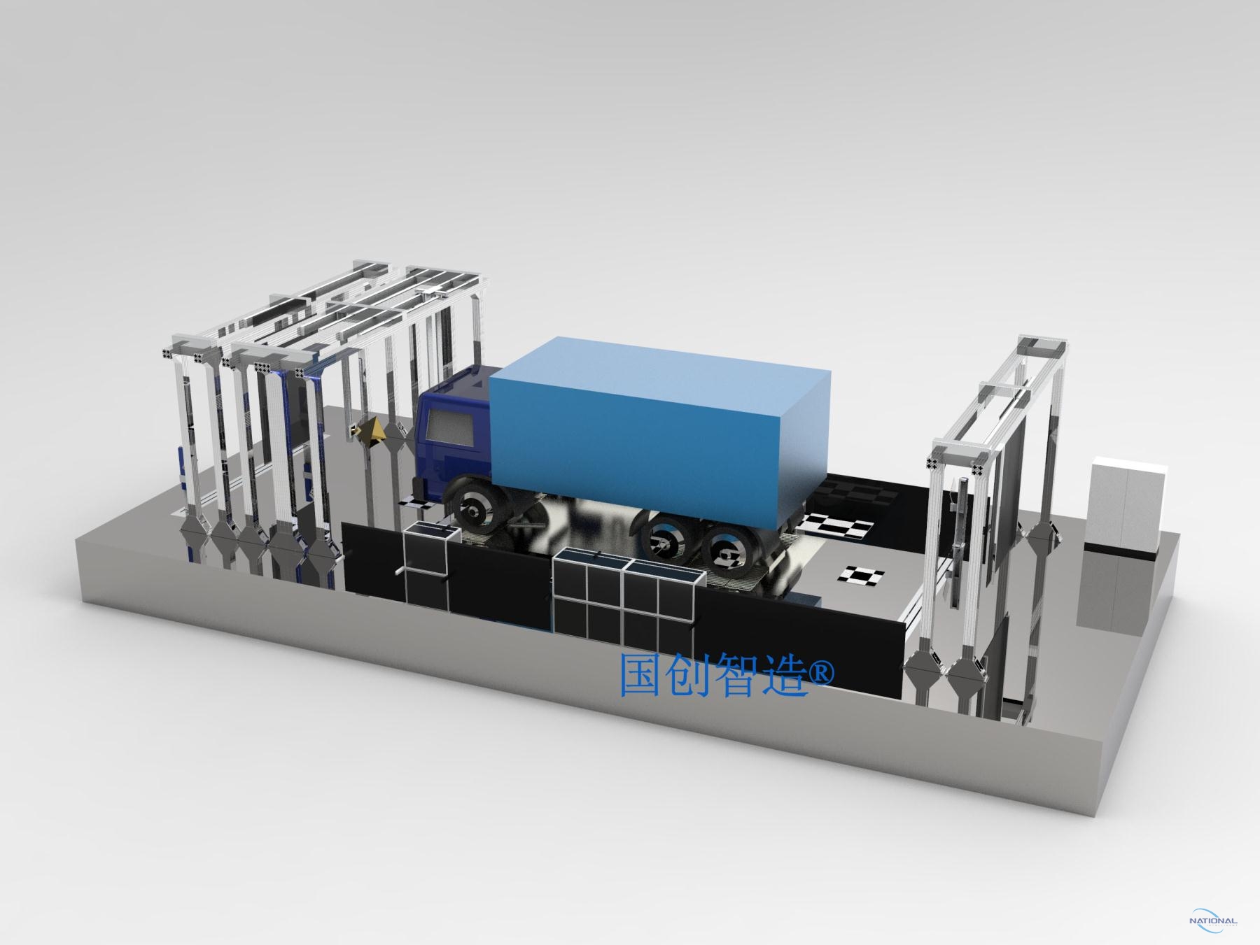 环视影像系统摄取车辆四周景物并通过控制器将四周景物合成一幅360°的全景图,显示效果类似从车辆上空俯拍的影像。环视影像系统不仅提供全景影像,同时显示动态辅助线和泊车辅助功能。因此全景影像拼接的精确程度将直接影响用户的体验。全景环视影像系统的整车下线标定就是为了根据实际车辆进行标定以保证全景影像的效果。标定系统由标定主控系统,车辆摆正器,标定板,工艺照明设备组成。