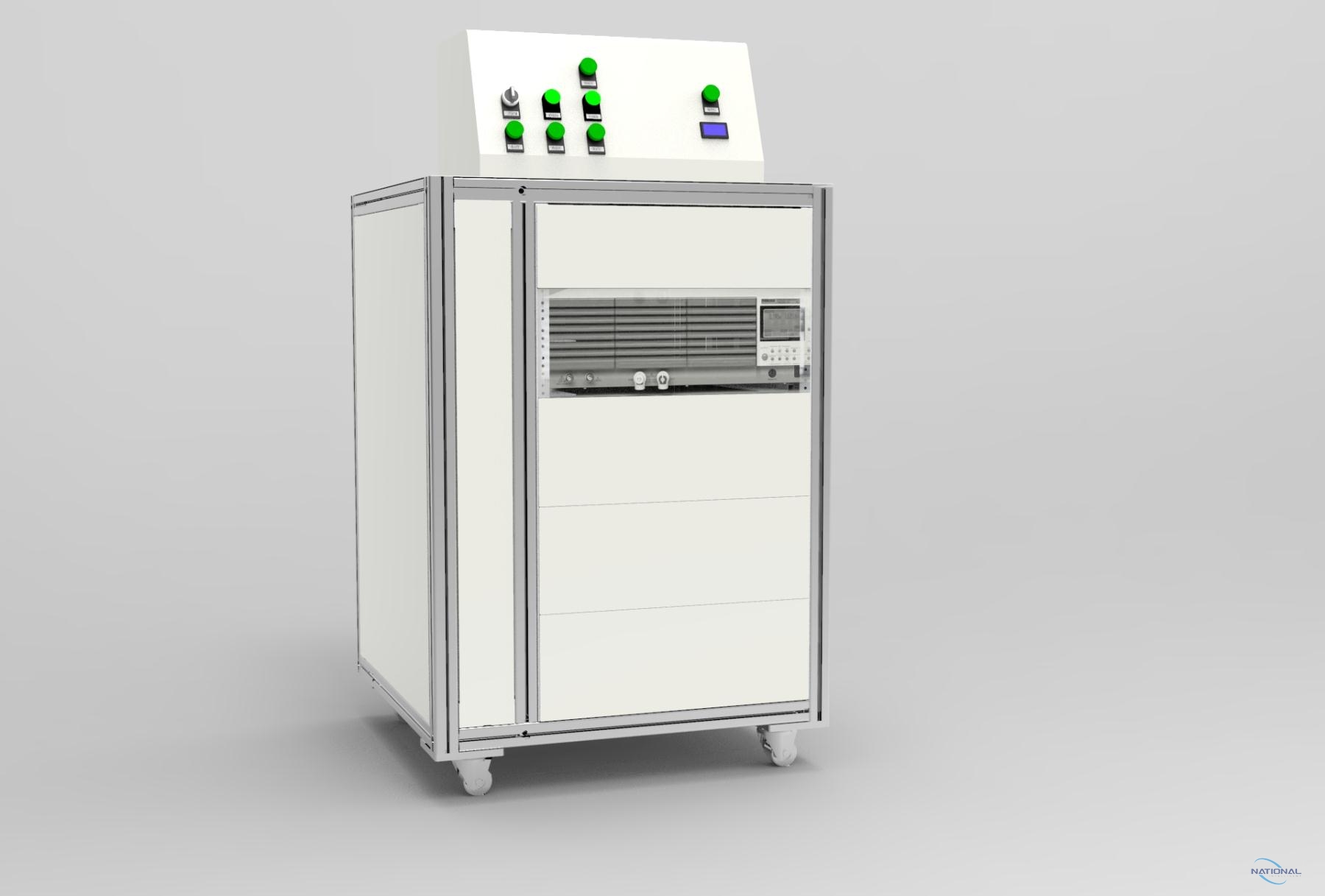 根据工位布局合理性要求设备采用地面放置方式。本设备需采用台车设计方式,内部集成电源、指示灯、开关、电压表头等,外部安装高压线束和低压线束。