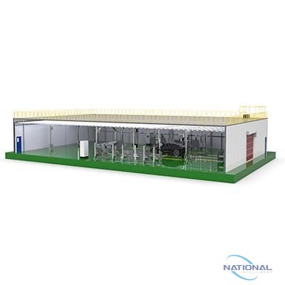 环视影像系统摄取车辆四周景物并通过控制器将四周景物合成一幅360°的全景图,显示效果类似从车辆上空俯拍的影像。环视影像系统不仅提供全景影像,同时显示动态辅助线和泊车辅助功能。因此全景影像拼接的精确程度将直接影响用户的体验。全景环视影像系统的整车下线标定就是为了根据实际车辆进行标定以保证全景影像的效果。标定系统由标定主控系统,车辆摆正器,标定板,工艺照明设备组成。