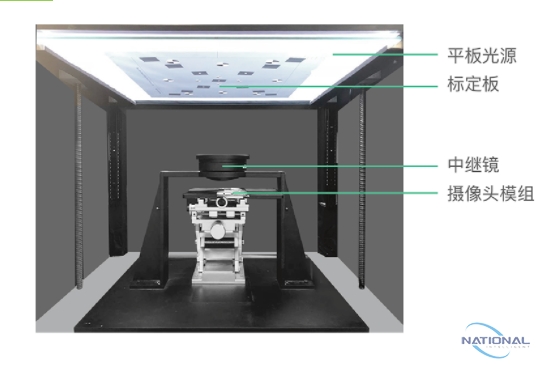 将ISO图像固定在远焦标靶上,使用摄像头通过增距镜摄影图像,通过数据解码设备将图像解码后显示至计算机界面,通过图像对比判断检测结果是否符合要求。
